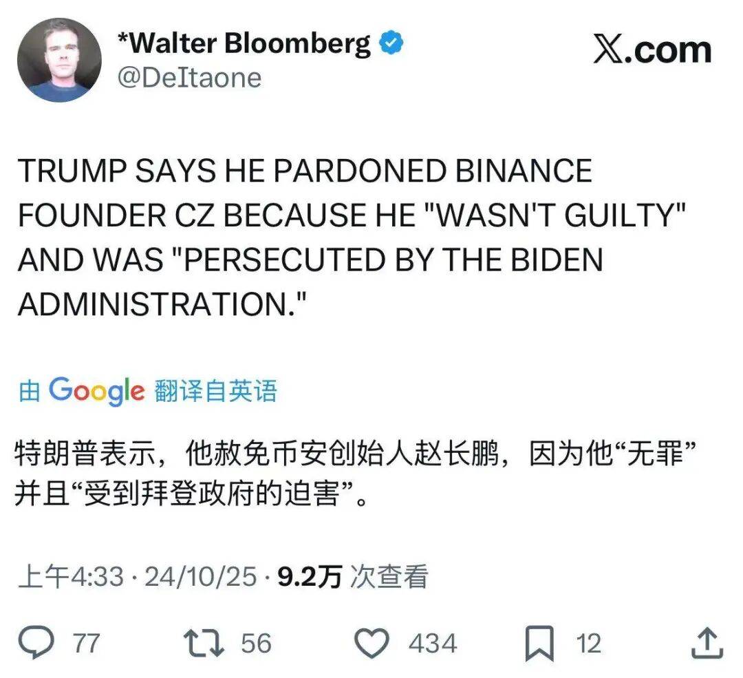 特朗普的官方理由是,行使总统的宪法权力,同时批评拜登政府对加密货币行业的打压。特朗普还公开表示,赵长鹏并未犯罪,而是成为了“政治迫害”的受害者。看得出,特赦不仅是为了赵长鹏,更多的是为特朗普塑造与加密行业友好的形象,借此进行政治对抗。
