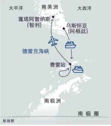 常见产品是 Antarctica21 公司的海空联航路线,从智利的城市蓬塔阿雷纳斯飞越德雷克海峡,8-10 天行程,价格 10-20 万人民币起。