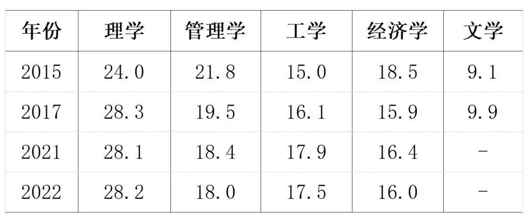 留学回国就业人员的学科分布显示,学习理学和工学的留学生占比整体上升,而管理学和经济学占比呈现下降趋势。理学占比最高,2022年为28.2%,比2015年高4.2个百分点;管理学占比从2015年的21.8%降至2022年的18.0%;工学占比从2015年的15.0%增至2022年的17.5%;经济学则从2015年的18.5%降至2022年的16.0%。这些变化反映了留学人员学科选择和国内市场需求的变化。