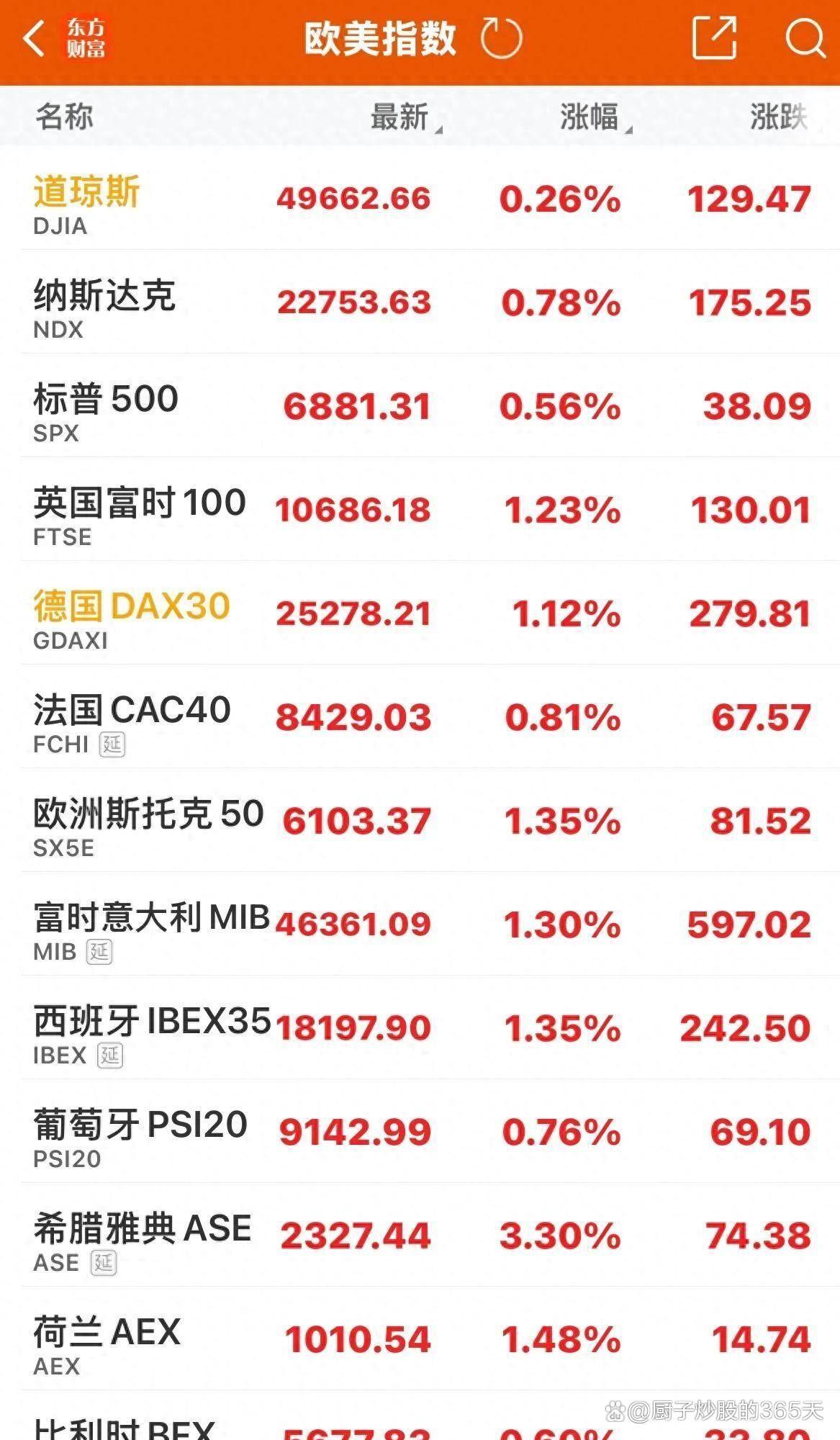 让我们首先将目光投向欧洲,感受那里的蓬勃生机。当日,欧洲主要股指集体飙升,仿佛一曲激昂的乐章,响彻整个欧洲大陆。泛欧斯托克600指数一骑绝尘,以626.72点的历史新高收盘,涨幅高达1.27%。英国富时100指数也不甘示弱,劲升130.01点,报收于10686.18点,同样刷新了历史纪录,涨幅达1.23%。巴黎CAC40指数紧随其后,上涨67.57点,收于8429.03点,涨幅为0.81%。德国DAX指数更是表现抢眼,上涨279.81点,以25278.21点收盘,涨幅高达1.12%。不仅如此,欧洲斯托克50指数、富时意大利MIB指数和西班牙IBEX35指数也分别上涨了1.34%、1.30%和1.34%。法国股指和欧元区斯托克50指数也加入了创历史新高的行列。